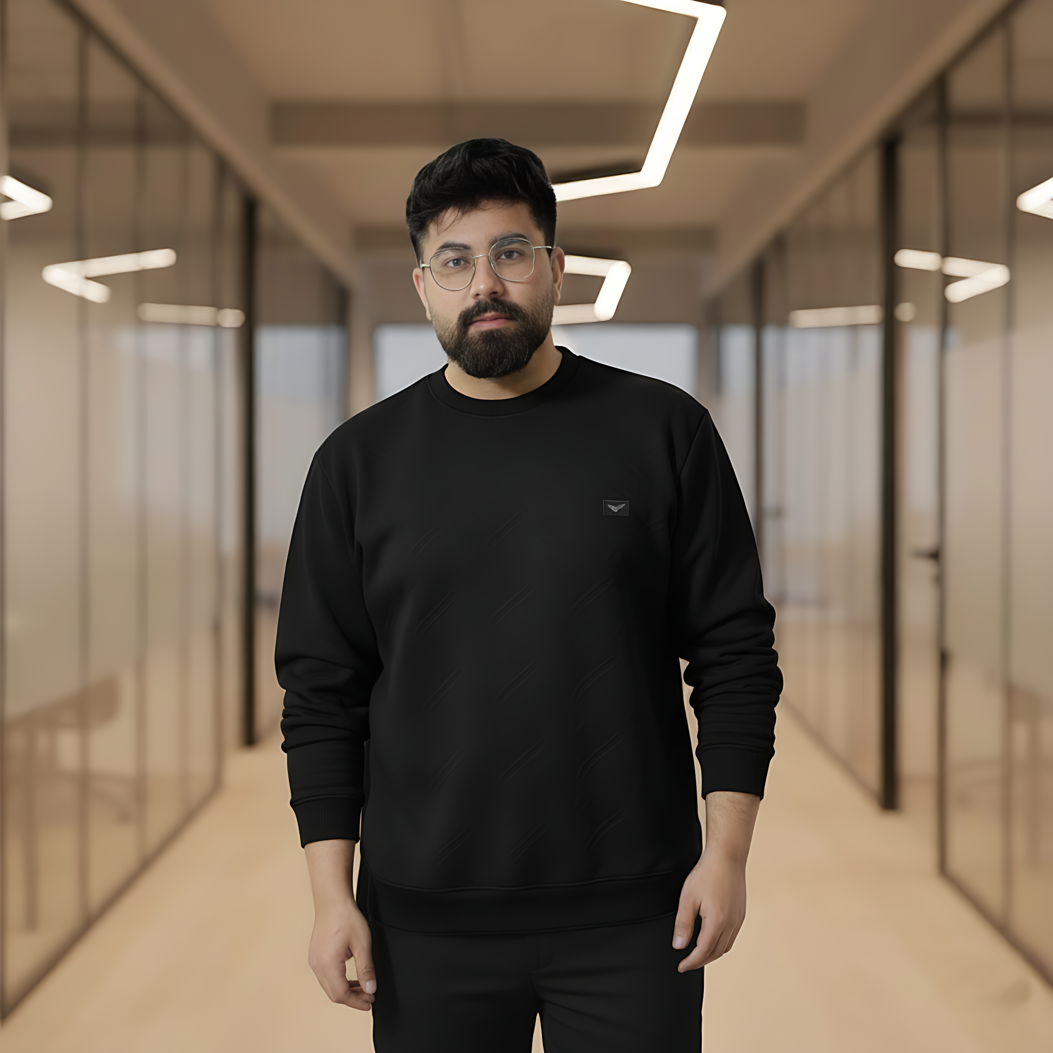 Premium textured crew neck shirt, crafted from wool for all-day comfort and style. Perfect for casual or smart wear.