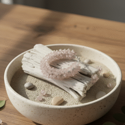 A cuff-style bracelet densely embellished with small, faceted pink beads on wire, featuring two silver-tone chains with matching bead clusters hanging from the ends.